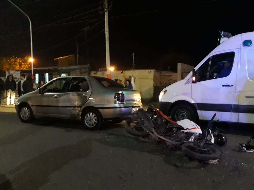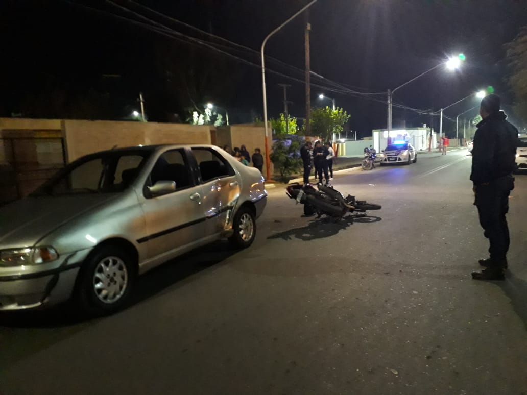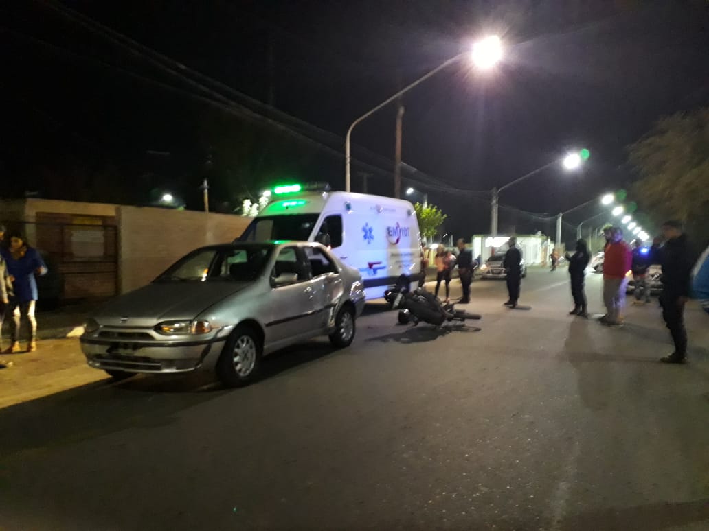 En los primeros minutos de este domingo, se registró un fuerte accidente en Chimbas entre un auto y una moto que dejó como saldo una joven fracturada.