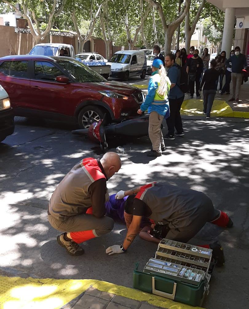 Una mujer se trasladaba en moto por Güemes hacia el Sur, cuando fue embestida por una camioneta que circulaba por Mitre hacia el Este. En la esquina no hay semáforos y el paso lo tenía el rodado de mayor porte.