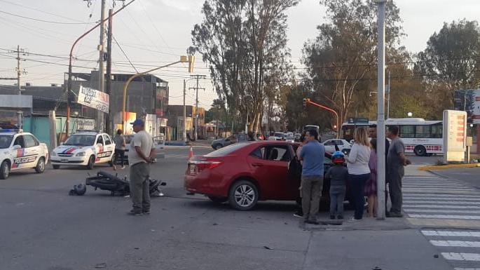 Una mujer sufrió lesiones de distinta consideración al chocar en moto contra un auto. El siniestro se produjo en la tarde de este martes sobre calle Lemos, metros al Norte de Doctor Ortega.