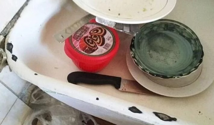 Cuando los policías llegaron al domicilio, encontraron el arma homicida en la cocina. El cuchillo estaba tirado en la bacha y todavía estaba manchado con sangre.