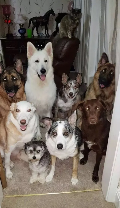 En Gales, una mujer logró un verdadero milagro al realizar una insólita foto de sus 17 mascotas, las cuales posaron atentamente para la cámara.
