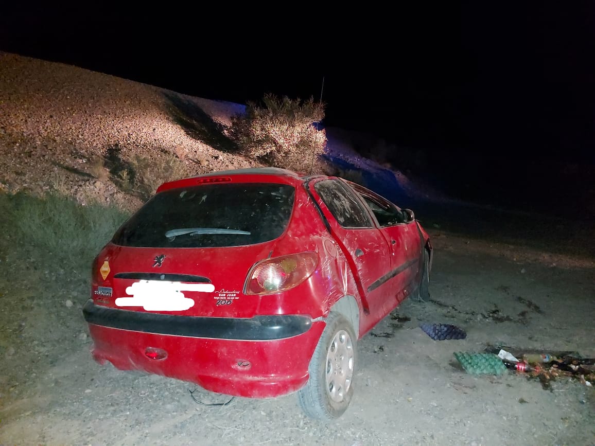 Personal policial informó que el siniestro ocurrió en Villa Iglesia, en la zona del ingreso, cuando una mujer de 39 años que conducía un Peugeot 208 perdió el control del rodado y volcó.