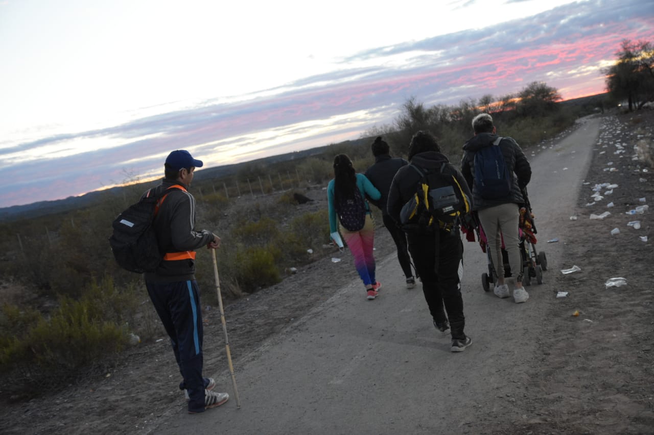 En bicicleta y caminando, así se vio a las personas en parte de Ruta 20 y 141, que por algún motivo realizaron una promesa y antes que saliera el sol, comenzaron con el viaje hacia el paraje Difunta Correa.
