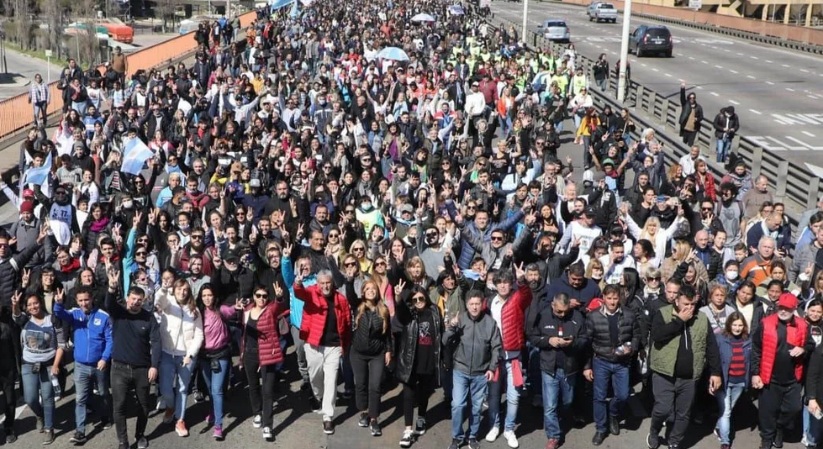 El conjunto de los intendentes de la provincia de Buenos Aires se concentraban a las 15 en la esquina de Belgrano y 9 de julio, como “punto de partida de la marcha convocada en defensa de la democracia”.