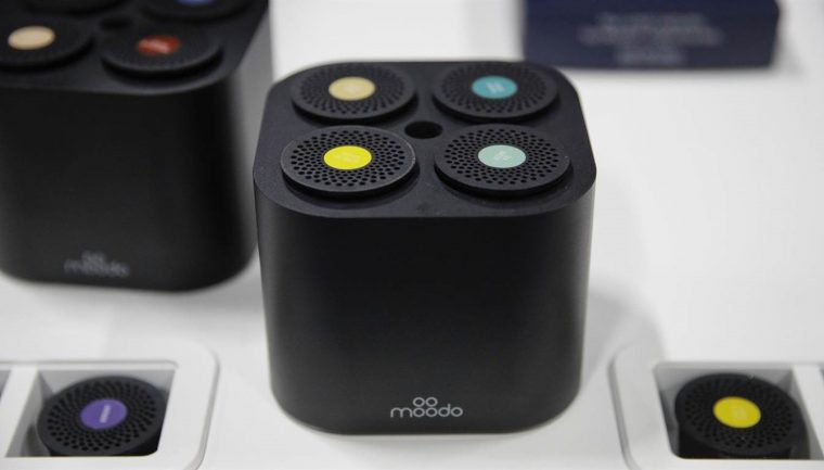 Moodo usa unas cápsulas con aroma, y una base que las activa. La base, por supuesto, está conectada a Internet: es posible activar el perfume con una aplicación desde cualquier parte del mundo, o hacer con un comando a un parlante conectado. Incluso es posible guardar una combinación de olores activando cierta cantidad de fragancia de las cuatro cápsulas, para activarla en otro momento o compartirla con otros usuarios.