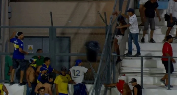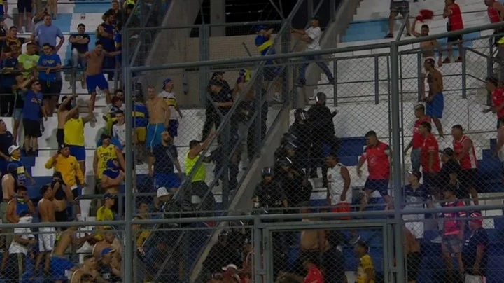 Una imagen lamentable en el regreso del fútbol argentino. Hinchas de Boca e Independiente protagonizaron incidentes en las tribunas del Estadio Bicentenario de San Juan mientras se disputaba el amistoso que finalmente terminó en empate 0 a 0.