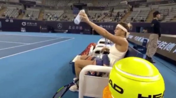En este caso, la tenista de 20 años, que cayó frente a la china Wang Qiang en cuartos de final por 7-5 y 7-5, había terminado el agua de su botella e intentaba llamar la atención del muchacho para que se la tire en la basura y al no recibir una respuesta inmediata, se la arrojó al suelo.
