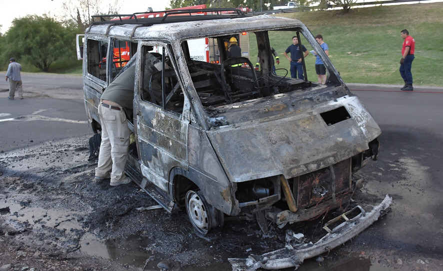 Un anciano de 75 años identificado como José Gamez se quedó sin la Ranault Trafic (foto diario Huarpe) que, sobre las 19 de ayer, guiaba por el Lateral Norte de Circunvalación al Este de España, en Capital, a causa de una falla en el sistema de combustible mixto del vehículo (gas y nafta) que provocó un incendio. Bomberos controló el siniestro, informó la Policía.