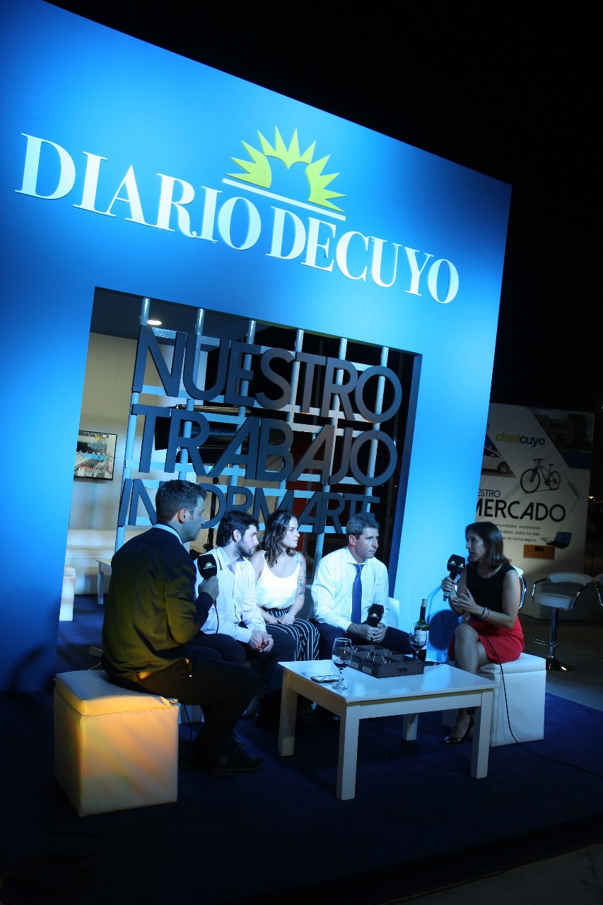 Luego de la apertura de la Fiesta Nacional del Sol 2019, el gobernador Sergio Uñac y la ministra de Turismo, Claudia Grynszpan visitaron el stand de DIARIO DE CUYO y participaron de una entrevista distendida con los conductores Franco Suárez y Abril Oyola, más el editor de la Sección Web, Mario Romero.