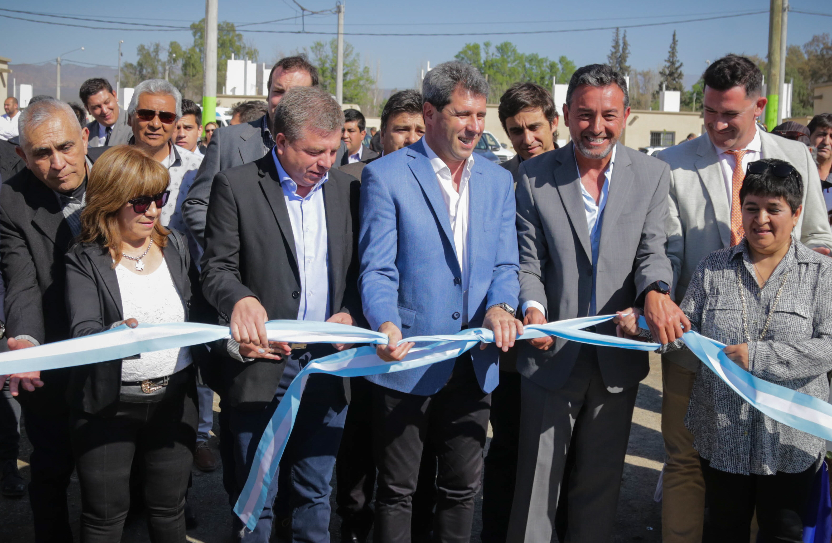 El gobernador Sergio Uñac visitó ayer Jáchal, donde presidió el acto de entrega de 68 viviendas del Barrio Pismanta 3 y luego el de las nuevas líneas internas de colectivo 502 y 503, entre otras actividades.