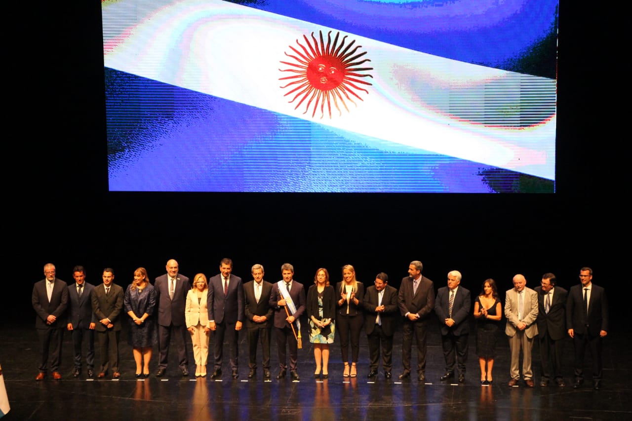 El Teatro del Bicentenario fue el lugar donde el gobernador Sergio Uñac quiso ponerle un tono personal a sus palabras, casi reflexivo al final de una larga e histórica jornada en el país. A pesar que tenía un discurso armado, prefirió algo más coloquial, sin leer ningún papel