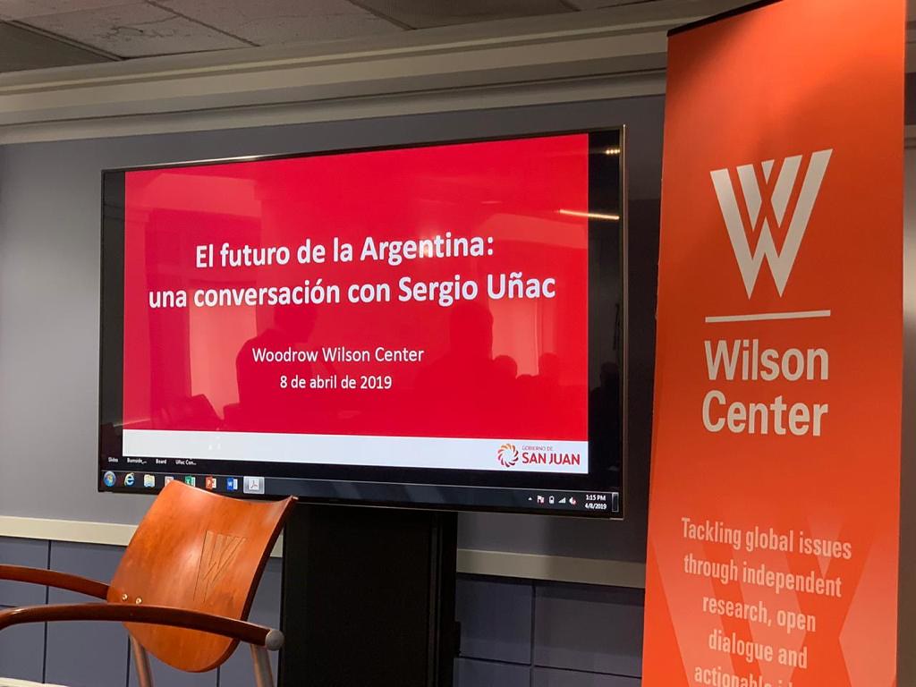 El gobernador Sergio Uñac brindó este lunes una disertación en la ciudad de Washington DC, Estados Unidos. El encuentro, al que accedieron medios de comunicación argentinos y estadounidenses, tuvo lugar en el Wilson Center, uno de los foros de política más destacados del país en el cual se abordan los problemas globales a través de la investigación independiente y el diálogo abierto para informar ideas viables para la comunidad política.