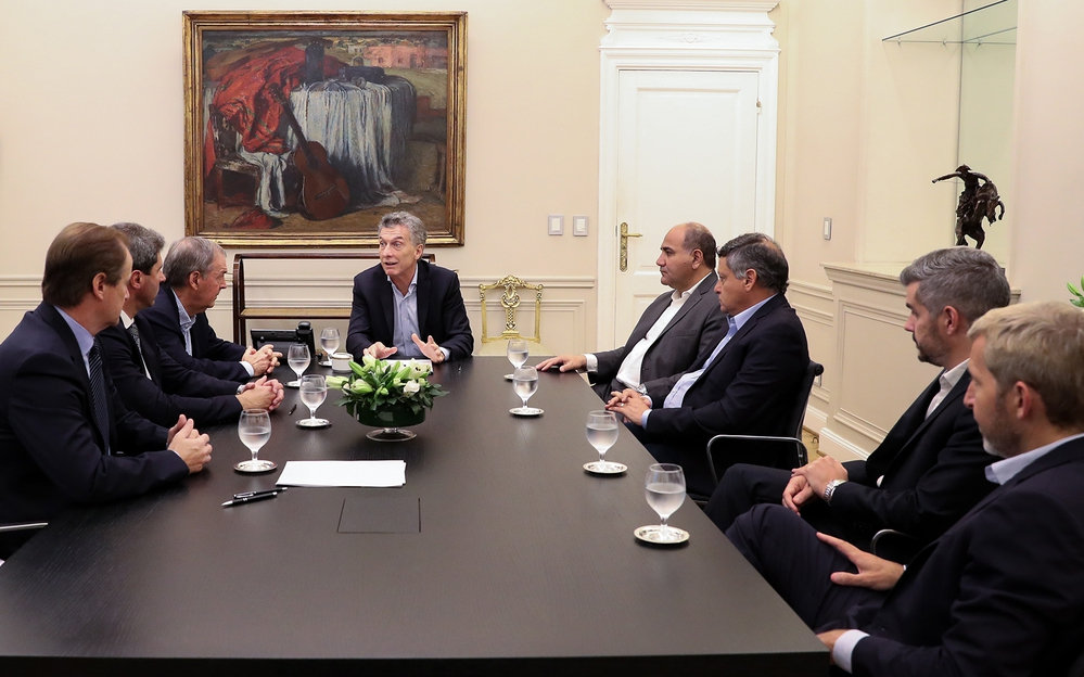 El gobernador sanjuanino Sergio Uñac habló esta noche tras la reunión que mantuvo en la Casa Rosada con el presidente Mauricio Macri y otros pares peronistas. El tema: las negociaciones con el Fondo Monetario Internacional (FMI) que está llevando adelante el Gobierno nacional y con las que espera cerrar un crédito en orden a los 30.000 millones de dólares.