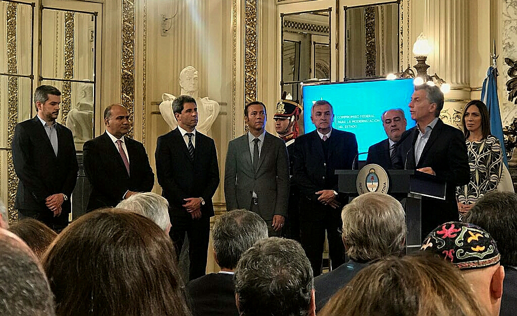El gobernador Sergio Uñac y los primeros mandatarios del resto de las provincias se reunieron esta mañana en el Salón Blanco de Casa de Gobierno con el presidente Macri y otros funcionarios de la Nación y firmaron el denominado "Compromiso Federal para la Modernización del Estado". Este documento busca propiciar el trabajo conjunto entre la Nación y las provincias para lograr "mayor transparencia y eficiencia en el servicio de administración pública".