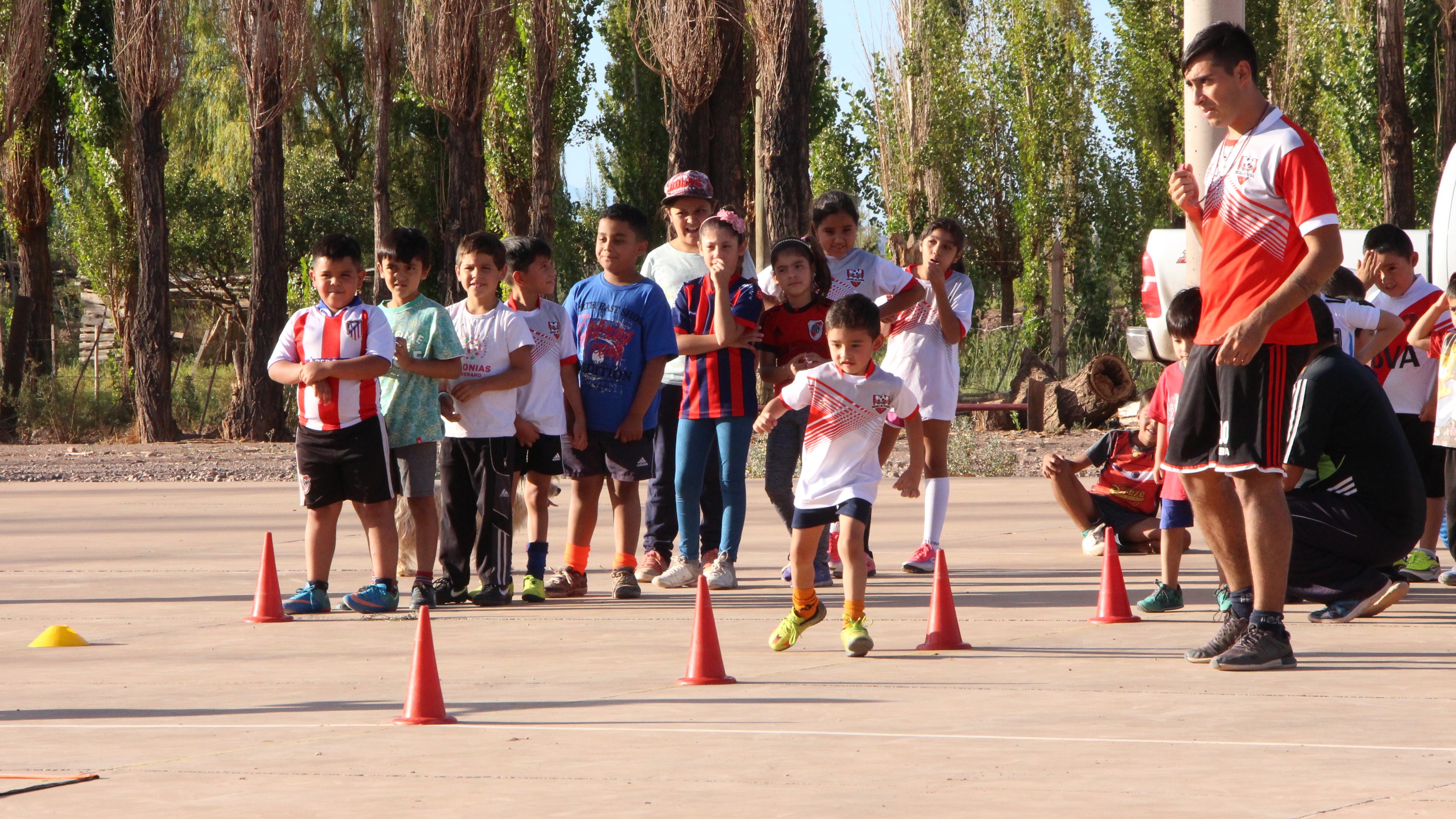 La tarde es soleada y el calor se hace sentir. De a poco, chicos con ropas deportivas, algunos tomados de las manos de sus madres con destino al playón del Club Deportivo Barreal. Allí funciona la única escuela de fútbol que hay por estos días en el departamento Calingasta. Son aproximadamente un centenar de niños entre niñas y varones de 4 a 14 años de edad. Muchos de los chicos nacieron en Barreal, mientras que otros llegaron de otros lugares con sus padres, que se radicaron en la zona por distintos motivos, algunos porque comenzaron con emprendimientos productivos, otros porque son gendarmes y se trasladaron con sus respectivas familias y algunos porque quisieron radicarse en la tranquilidad que ofrece este valle en la precordillera sanjuanina. El proyecto de esta escuela de fútbol es una idea del profesor de Educación Física Jorge Suárez. La dirigencia del club Deportivo Barreal apoyó el proyecto que el 5 de marzo pasado cumplió un año. La escuela no tiene fines de lucro, porque solo se cobra una mínima colaboración para gastos operativos. Además, también el municipio apoya como los padres, en la merienda y copa de leche, preparadas por las mamás, que se les ofrece a los niños luego de cada entrenamiento. La escuela funciona en calle Las Heras S/N, en horario de tarde, desde las 18 hasta las 19. El objetivo futbolero es que los chicos se integren y desarrollen aún más, valores morales como respeto, compañerismo, trabajo en equipo, solidaridad, amistad, entre otros. También, el proyecto apunta a que los chicos puedan salir del pueblo y conocer por medio del deporte otros lugares donde puedan jugar en torneos provinciales e interprovinciales y que conozcan y tengan roce con otros chicos. En el playón se nota mucho entusiasmo. los lunes entrenan los niños de 4 años, mientras que las nenas, lo hacen miércoles y viernes. También asisten chicos con capacidades especiales. La escuela de fútbol tiene el padrinazgo de dos futbolistas que son ídolos de Sportivo Desamparados. Se trata de los hermanos Ceballos, Lucas y Santiago, quienes colaboran con este proyecto infantil con materiales deportivos. Esto se debe a la estrecha relación que tienen con el profesor Suárez, ya que son familiares, pero también porque trabajaron juntos en el club puyutano. En la escuelita todo se hace por amor a la niñez. Y, juntos, en familia, potencian la educación deportiva en los chicos que viven en zona de frontera.
