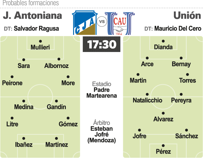 Los dos tienen 6 puntos aunque el Azul tiene pendiente la visita a Unión Aconquija en Catamarca, que será el próximo jueves, pero no puede darse más lujos de perder puntos si es que tiene pretensiones de pelear el ascenso directo a la B Nacional. En las novedades, la ausencia más notoria en Unión es la salida del goleador Gabriel González, quien por acumulación de amarillas se quedará afuera, propiciando el regreso a la titularidad de Cristian Pérez como único punta en el esquema de Del Cero.