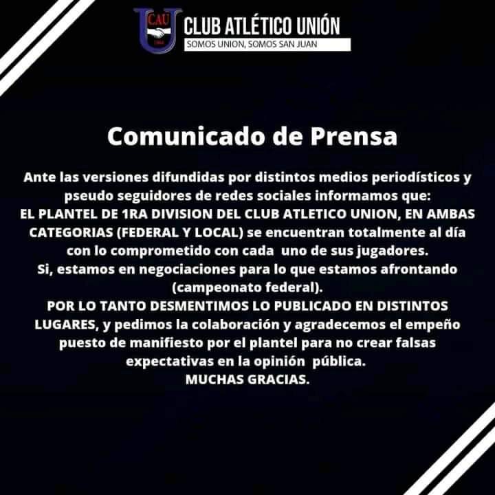 En la imagen que se viralizó en las redes sociales, la dirigencia explicó que "el plantel de 1ra división, en ambas categorías (Federal y Local) se encuentran totalmente al día con lo comprometido con cada uno de sus jugadores". Además, coincidieron en que "estamos en negociaciones para los que afrontar el campeonato federal".
