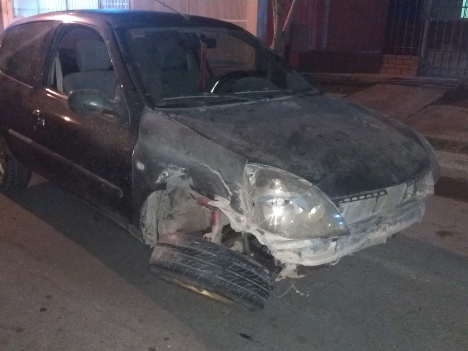 Según trascendió, el conductor del Clio intentó darse a la fuga por calle Rodríguez, sin éxito ya que su vehículo tenía dañada una de las ruedas de delanteras, además del rápido accionar de los vecinos que lo retuvieron en el lugar.