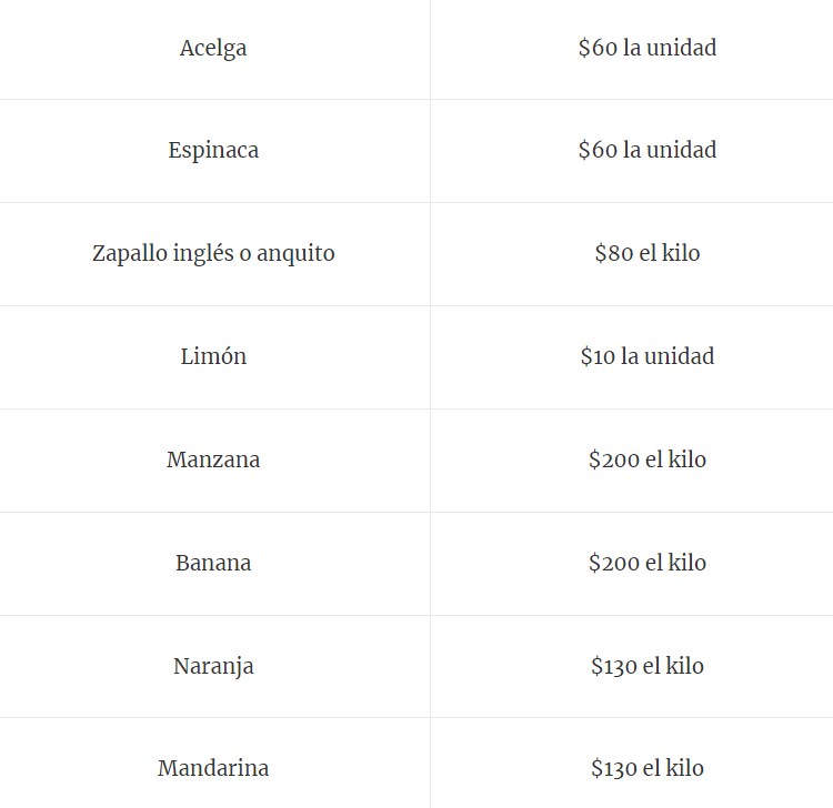Cabe recordar que estos montos son revisados cada 30 días por estas entidades y se trata de precios máximos, es decir, un tope al costo del producto, por lo que puede haber casos en los que estas frutas o verduras se consigan a un valor menor.