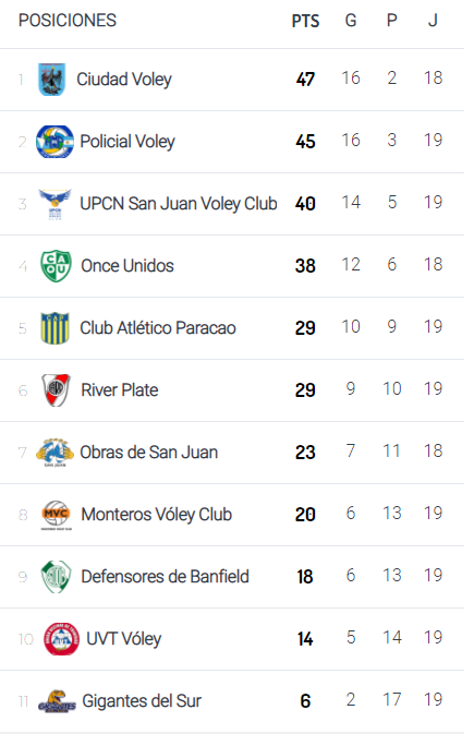 Este jueves, los campeones cerrarán la ronda clasificatoria ante Monteros Voley, a partir de las 14 (va por TyC Sports Play) y esperarán luego el desarrollo del resto de la 22da fecha para determinar las posiciones que conformarán los cruces de cuartos de final, que se disputarán desde la semana próxima en San Juan.