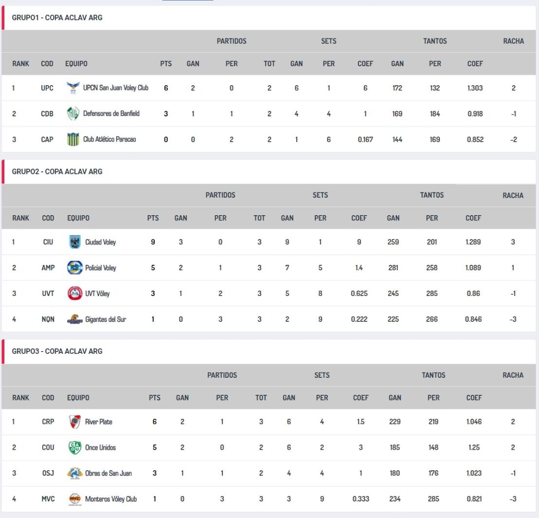 A medida que se cumple el fixture de la tercera jornada de la Copa ACLAV de voley este miércoles en Mar del Plata, se van conociendo los nombres de los equipos que están clasificando a los cuartos de final que se realizarán mañana. Y el primer duelo confirmado será entre sanjuaninos, con UPCN midiéndose frente a la UVT.