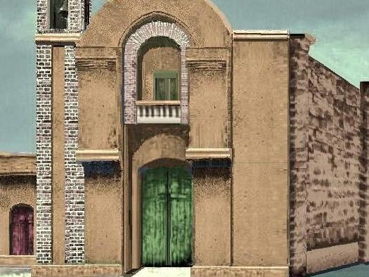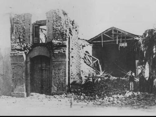 García tomó una foto de la destruida iglesia de los Dolores y logró reconstruirla digitalmente, aportándole color. La imagen de abajo es de 1894, posterior al terremoto.