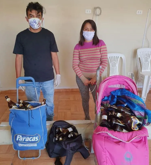 Cuando la policía los detuvo en plena vía pública, los sujetos afirmaron que la idea era comerciar las botellas de alcohol como delivery. Se trata de un insólito hecho en plena cuarentena por la pandemia de COVID-19.