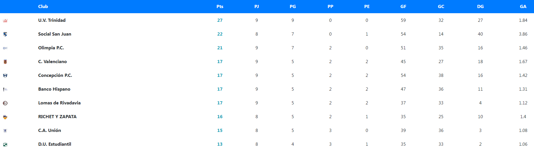 La Unión Vecinal de Trinidad tuvo un gran despliegue y se impuso por 7-2 como local, para quedar con 27 unidades, seguir invicto y con puntaje ideal.