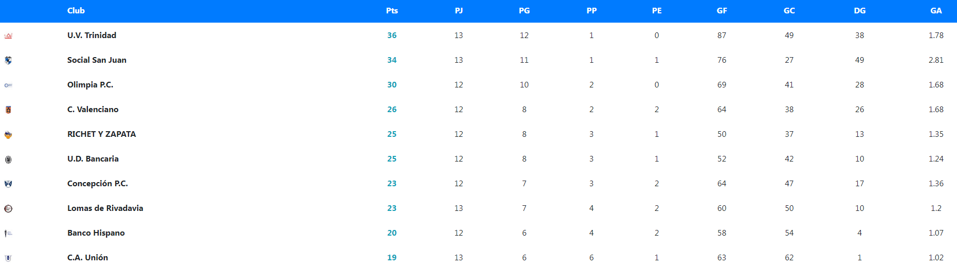 El líder UVT no tuvo piedad contra Bancaria Sub-23 y lo goleó por 4-0 como visitante, para alcanzar los 36 puntos y mantenerse en la cima, mientras que Social San Juan continúa como escolta a dos unidades tras vencer por un ajustado 4-3 a Unión.