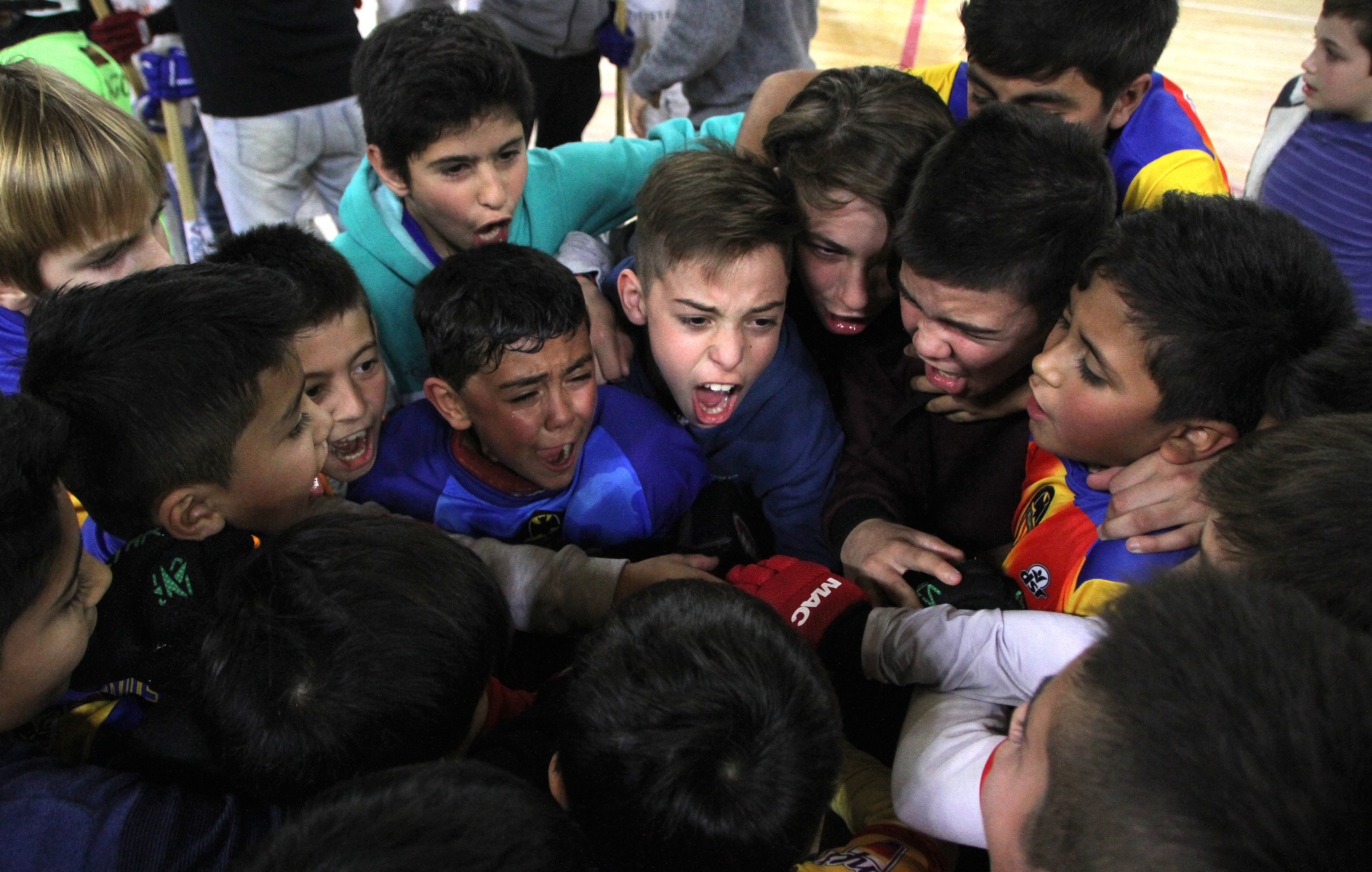 Eufóricos. Valenciano terminó sufriendo el final ante Olimpia, por eso el festejo eufórico de los chiquitos de la Barraca que hoy irán por el título.