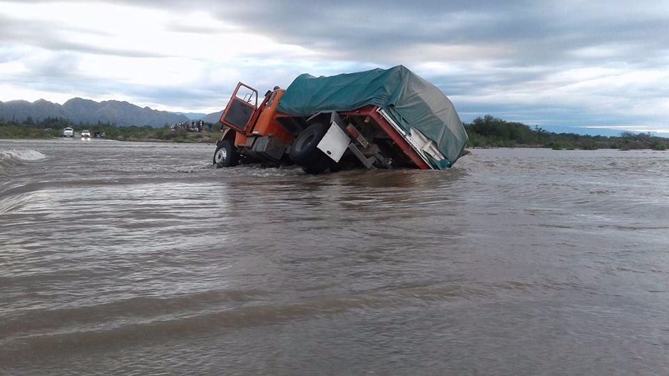 Así las cosas, este mediodía un camión que iba camino a la villa cabecera del departamento se atascó cuando intentó cruzar a la altura de Balde de las Chilcas (a unos 5 km del pueblo) y la parte izquierda del rodado se hundió.
