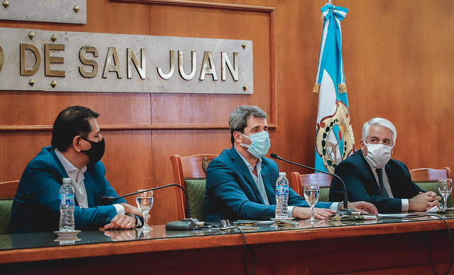 En la presentación estuvieron el ministro de Desarrollo Humano y Promoción Social, Fabián Aballay; el ministro de Producción y Desarrollo Económico, Andrés Díaz Cano; intendentes municipales; y demás autoridades provinciales.