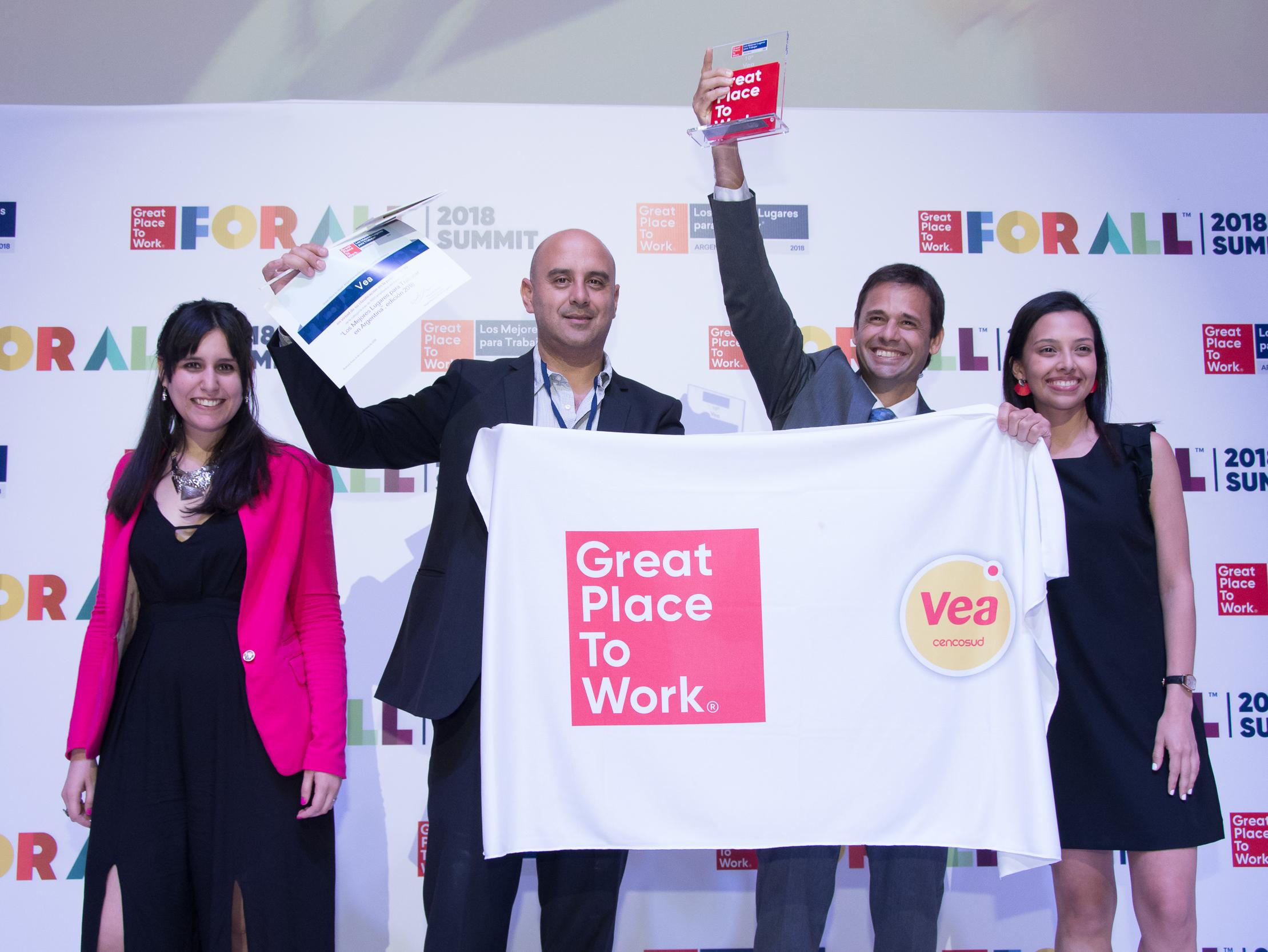 Vea Supermercados es una de las 52 organizaciones reconocidas por Great Place toWork como uno de “Los Mejores Lugares para Trabajar en Argentina 2018”.
