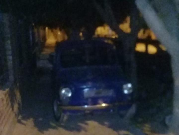 Un lector envió imágenes de un auto estacionado sobre la vereda que corta el paso, en el interior del barrio Salvador Sur, de Pocito.