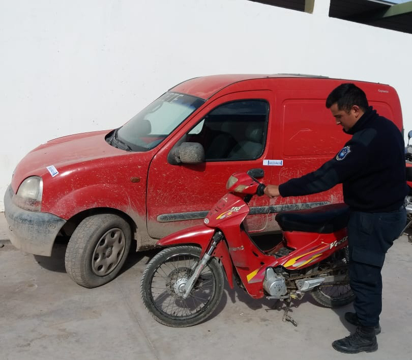 Las habituales recorridas de prevención por barrios conflictivos de La Bebida, en Rivadavia, surtió efecto para los policías de la seccional 34ta apostada en el barrio Las Lagunas. La noche del pasado 4 de agosto avistaron una Renault Kangoo en el Lote Hogar 34 y sus ocupantes la abandonaron en el acto al ver el patrullero. Había sido robada en Mendoza, en abril de 2015. Al día siguiente, un recorrido por el Lote Hogar 3 les permitió dar con una moto Appia 110 cc que dos sujetos abandonaron al ver el móvil. Es robada e intentan dar con el dueño.
