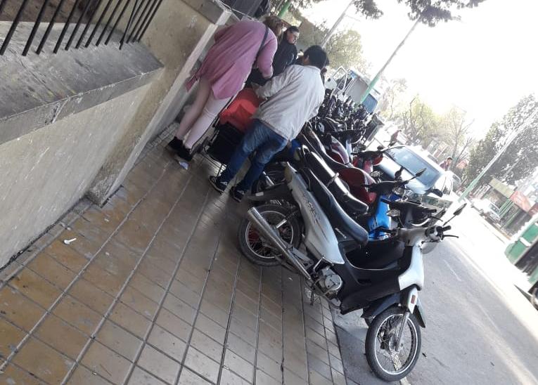 Un lector envió imágenes de la vereda del hospital Marcial Quiroga invadida por motos estacionadas.
