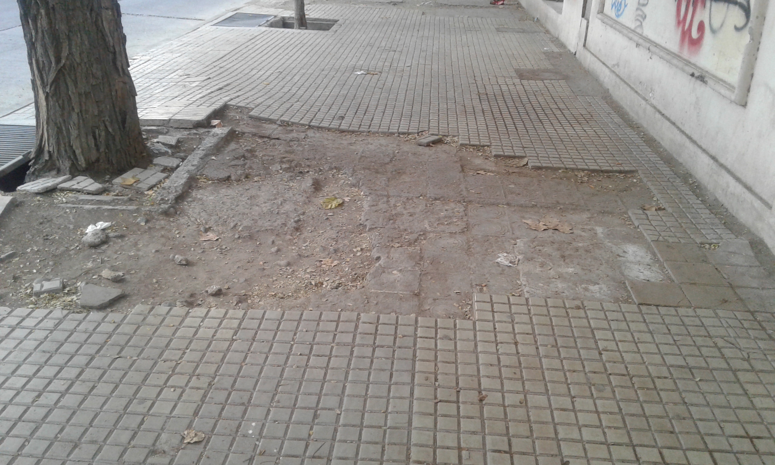 El lector Alejandro Juárez envió una imagen y el siguiente comentario: "Vereda rota en calle Tucumán entre Mitre y Santa Fe (Colegio Nacional Pablo Cabrera)".