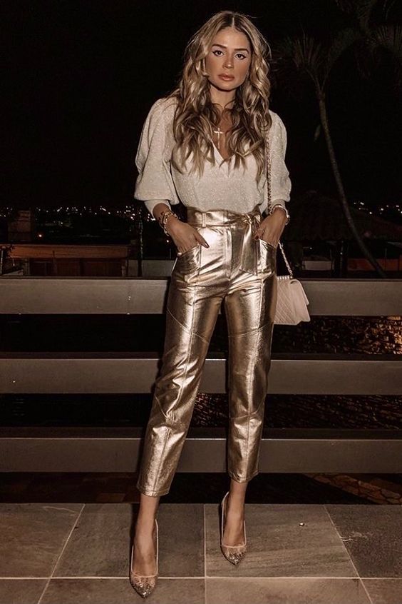 Diciembre es un mes de puro festejo, salidas a despedir el año con amigos o compañeros del trabajo, además de las celebraciones de Navidad y Año Nuevo. Si ves cualquier sección de pantalones en tendencia en este momento, lo más probable es que te encuentres con pantalones en distintas texturas, pero que no dejan de tener brillos, de lentejuelas, lúrex, vaqueros brillantes, o los plateados y dorados en modelo jean. Además, estos se adaptaron a los estilismos del momento, hay rectos, pata de elefante, enteritos, shorts, etc. Estos rebosan de personalidad y funcionalidad. Son ideales para cualquier momento y los combinas con múltiples posibilidades. Para las clásicas, un top o musculosa de seda y un pantalón de vestir, es una de las formas más sencillas de dar un golpe de efecto cuando sube la temperatura.
