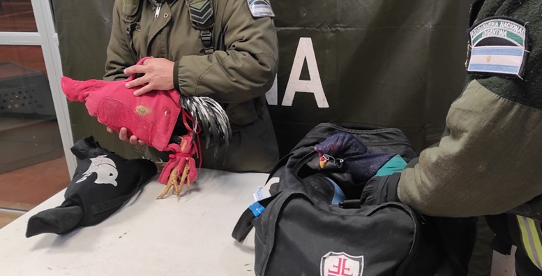 Como resultado del control físico y documentológico de los pasajeros, los gendarmes constataron la presencia de cuatro aves, que por sus características se tratarían de gallos de riña, dentro de un bolso de mano, los cuales eran transportados atados y envueltos en tela que evitaba la movilidad de las aves. El propietario del equipaje no contaba con la documentación que justifique su tenencia.
