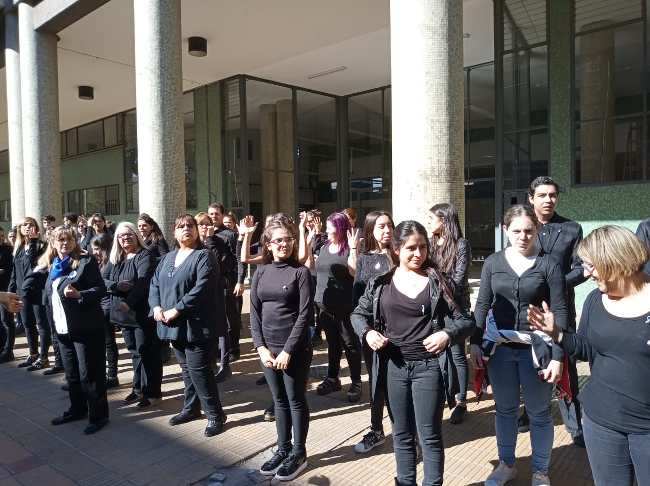 A pura emoción –muchos de los intérpretes terminaron con lágrimas en sus ojos- y ante la vista de muchos transeúntes que se sorprendieron y acercaron, los integrantes de la Asociación cubrieron la cuadra de Avenida Ignacio de la Roza entre Tucumán y Avenida Rioja, frente al Correo Argentino.