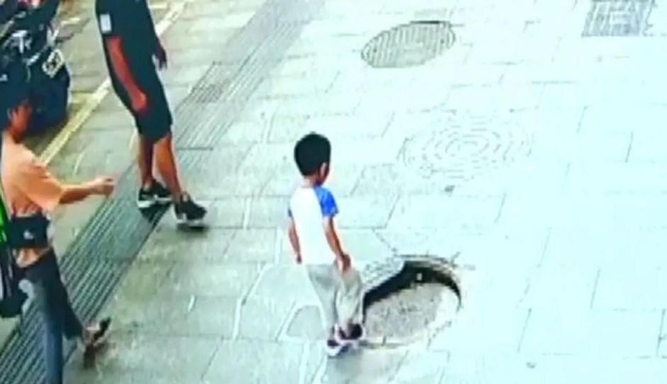 Un nene de tres años cayó por una alcantarilla en el sur de China y debió ser rescatado por su padre, ante la anonadada mirada de transeúntes que pasaban por el lugar. El incidente quedó registrado por las cámaras de seguridad.