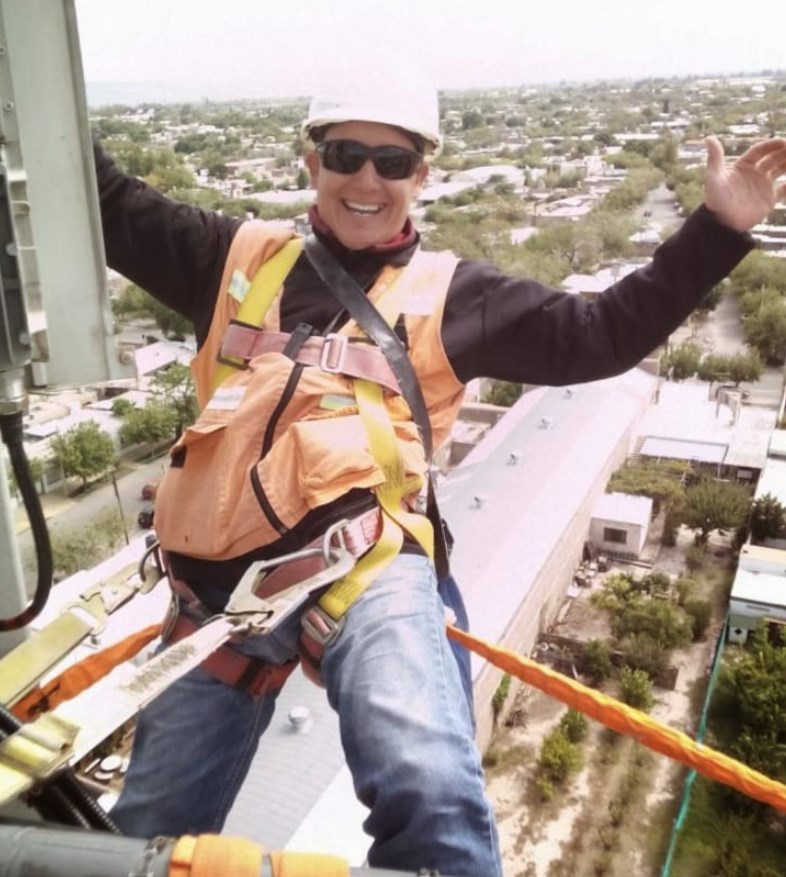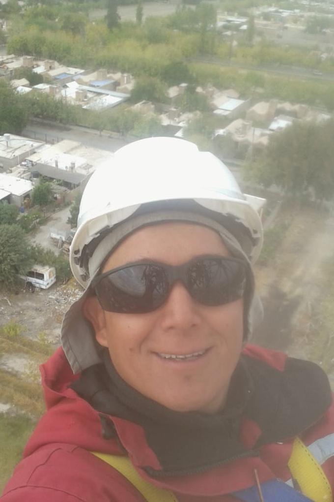 “Es un trabajo apasionante, pero también muy profesional. Yo siempre digo que cualquiera podría subirse a una torre. El tema es desempeñarse arriba, trabajar con equipos, moverse en las alturas, darse vuelta, porque a veces subís equipos pesados y hay que saber utilizarlos. Hay que estar un poco loco porque tu vida pende de un cinto, saber engancharse, porque si no, ante cualquier mareo o resbalón, no la contás. Es complicado. Hay que ser muy profesional”, dice y se pone serio al momento de hablar del tema.