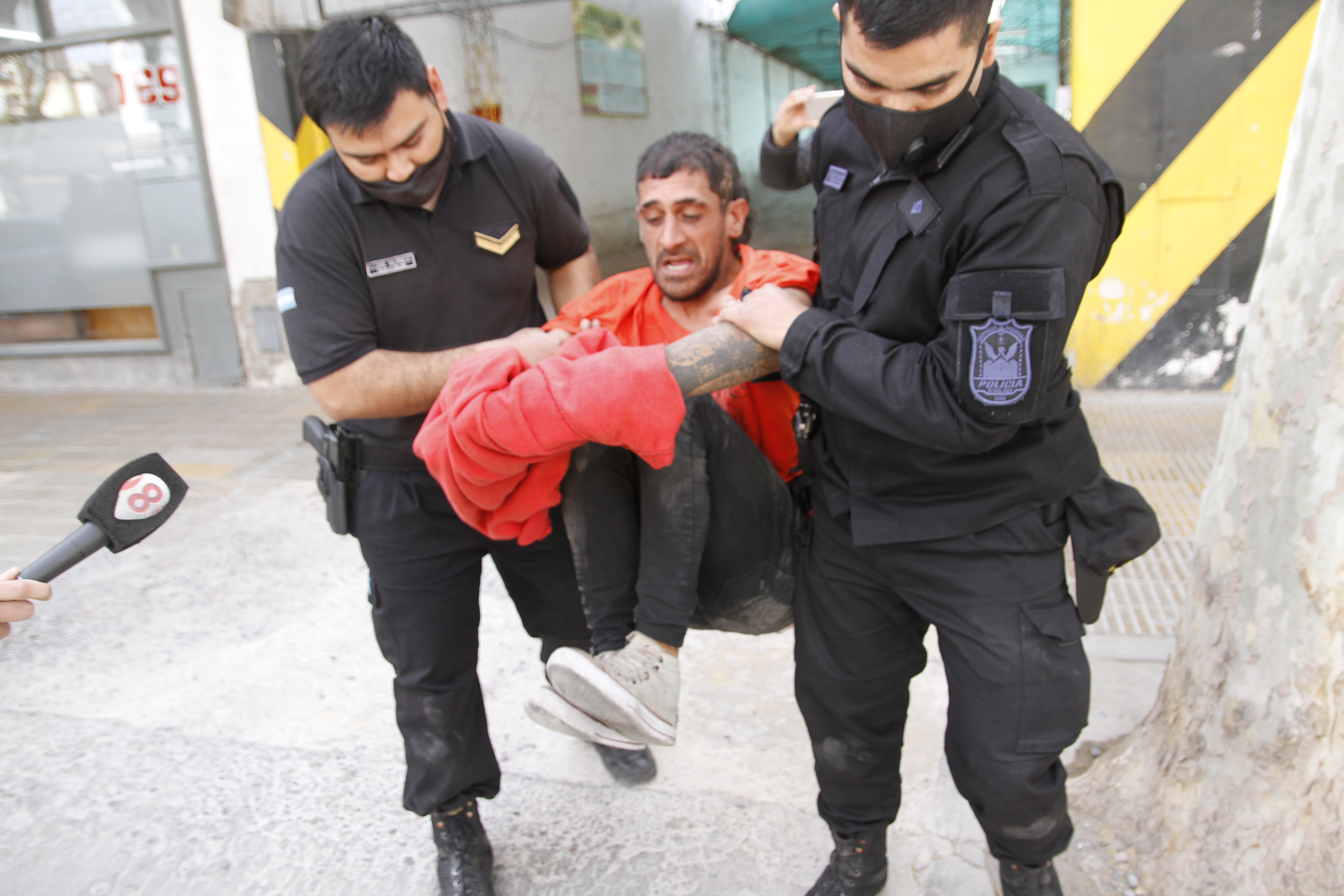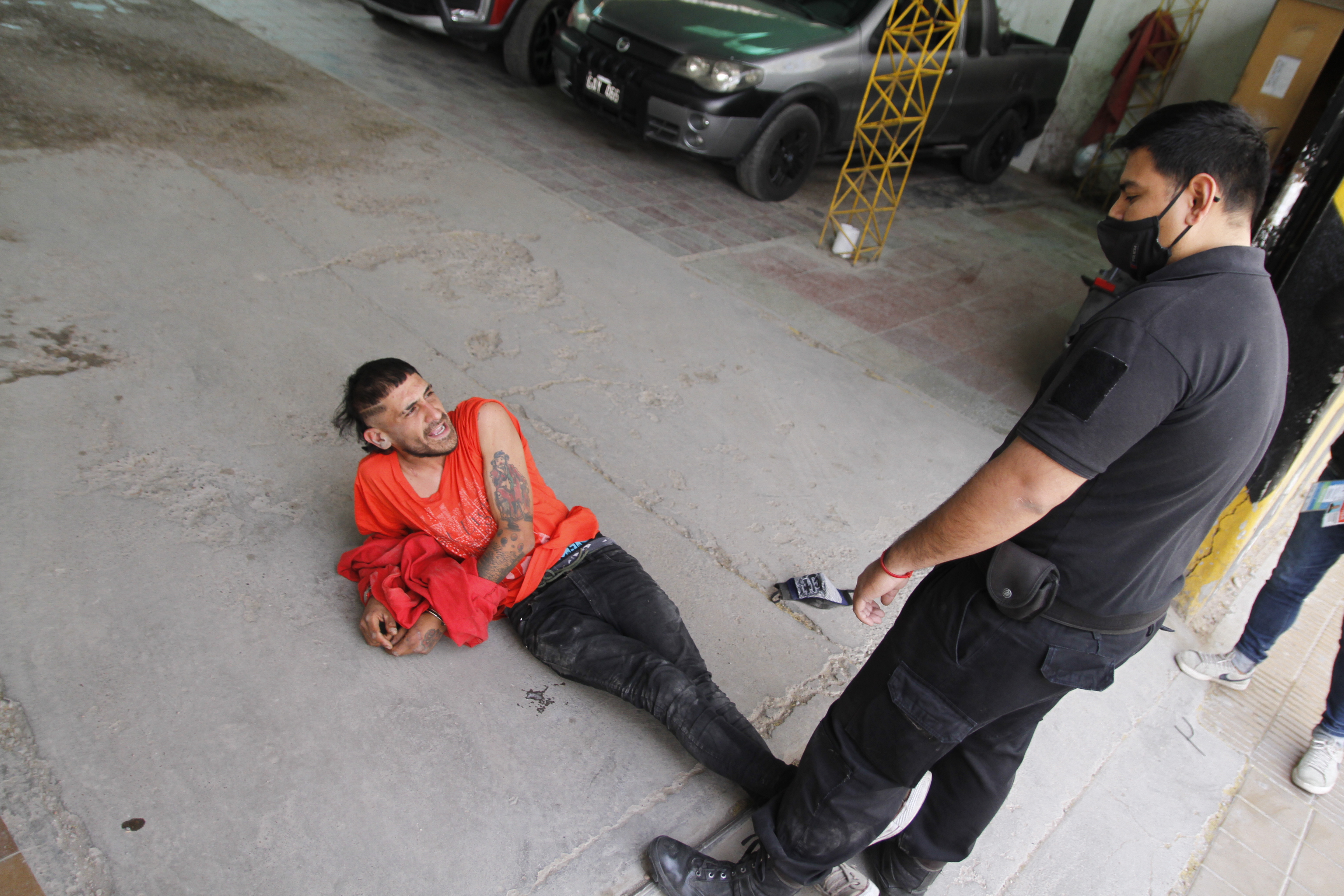 El hombre detenido es un malabarista que dijo que un policía le había robado sus elementos que utiliza para ayudar a los más necesitados y, una vez esposado, permaneció en el suelo por varios minutos en una guardería de autos de Santa Fe entre General Acha y Mendoza, Capital.