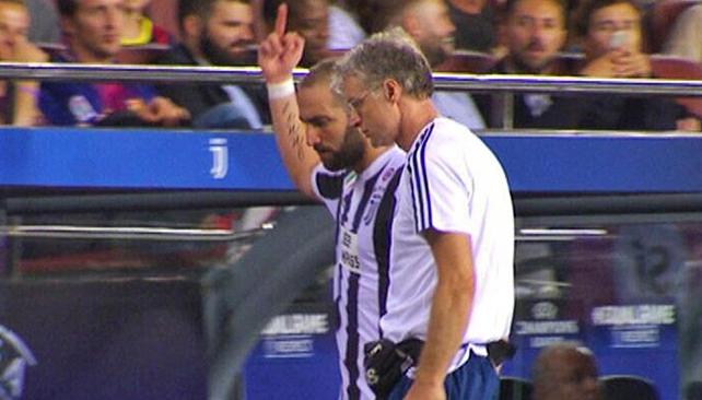 Gonzalo Higuaín no se bancó los insultos de los hinchas blaugranas cuando fue reeemplazado en la derrota de Juventus 3-0 frente a Barcelona, en la fecha inaugural de la fase de grupos de la Liga de Campeones de Europa.