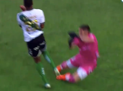 A los 28′ del primer tiempo, Reinaldo Lenis picó habilitado, Nelson Insfrán salió a achicar al borde del área grande y el colombiano, que llegó primero a la pelota, quedó desparramado en el césped. El juez observó una infracción, sancionó la pena máxima a favor de Banfield, le mostró la segunda amarilla al arquero y luego la roja. Insólito.