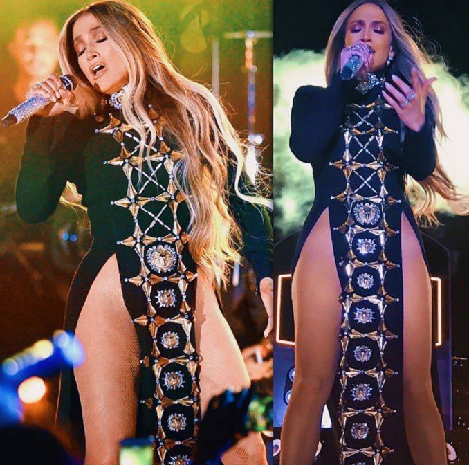 Jennifer Lopez sorprendió en un show en Nueva York con un vestido súper sexy con pronunciados tajos y sin ropa interior debajo.