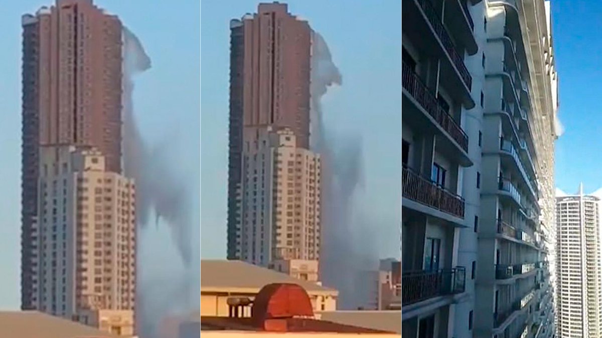 El violento balanceo habría quebrado la piscina ubicada en la cima de la torre y el agua comenzó a caer en cascada desde la parte superior. El video del episodio fue compartido por el DJ y camarógrafo londinense Majick en sus redes sociales junto con el mensaje: "El terremoto fue tan fuerte que incluso la piscina de la cubierta superior se filtró".
