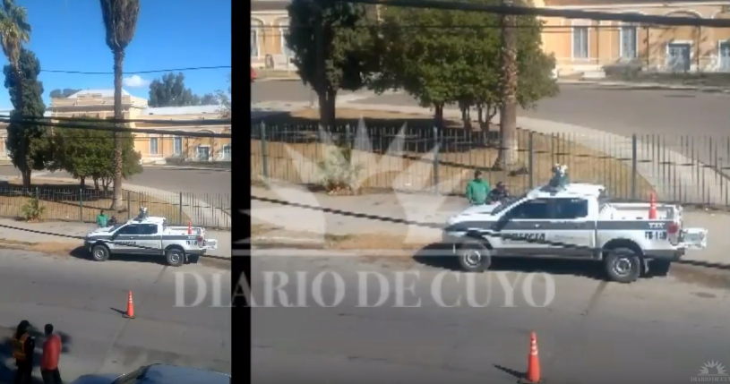 Un operativo policial realizado la semana pasada en calle España, poco antes Pedro Echagüe, justo enfrente del Museo de Ciencias Naturales. Allí, una persona que está en un edificio cercano ve una extraña escena y decide filmarla.