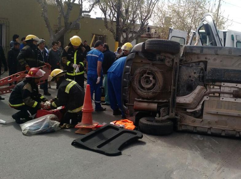 Durante el transcurso del mediodía del martes, un accidente de tránsito en el cruce de Laprida y Pueyrredón, en Santa Lucía, terminó con un patrullero volcado y dos policías atrapados en el auto, que tuvieron que ser rescatados por los bomberos.