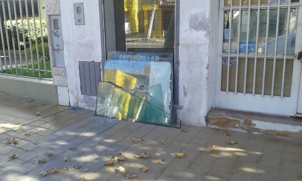 Un lector envió una imagen y el siguiente comentario: "Dejaron vidrios en la vereda, esto es en San Luis antes de Gral. Paz, es un peligro".
